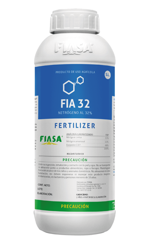 FIA 32 es un fertilizante de Nitrógeno líquido al formulado con tecnología QLT SYSTEM, el nitrógeno es un elemento con tecnología QLT SYSTEM diseñado especialmente para realizar aplicaciones directas de este elemento, la tecnología de retención de la misma, aseguran su disponibilidad para la planta por mayor tiempo, asegurando un rendimiento superior en comparación de las fuentes convencionales, contiene coadyuvantes que le dan mayor retención en el suelo y algunos contenidos en que le dan mejor asimilación y permanencia.