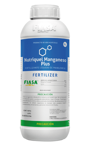 Nutriquel Manganeso Plus es un fertilizante de Manganeso líquido con tecnología QLT SYSTEM, de muy alta solubilidad. Nutriquel Manganeso Plus ayuda a corregir las deficiencias por la ausencia de Manganeso, estimulando el crecimiento de las plantas. El Manganeso es un elemento indispensable para el metabolismo vegetal, ya que forma parte indispensable de la función clorofílica, y del proceso de fotosíntesis, además de intervenir en procesos metabólicos de la planta.