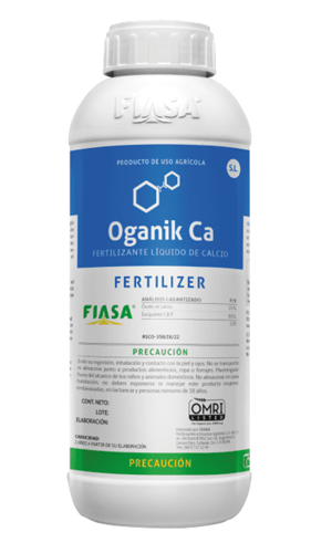 Oganik Ca es un fertilizante orgánico líquido de Calcio formulado con tecnología QLT SYSTEM que garantiza su asimilación. Su aplicación en los cultivos estimula la resistencia y crecimiento, fortaleciendo la estructura de la pared celular generando cultivos mas resistentes a condiciones adversas como al ataque de plagas y enfermedades. Oganik Ca mejora la calidad de los frutos, previene problemas como la pudrición apical y el cracking en frutos y estimula el crecimiento radicular.